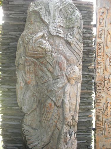 到無尾港 你一定會看到下面這個標誌 這是利用拆下來的石板屋 村人組成的