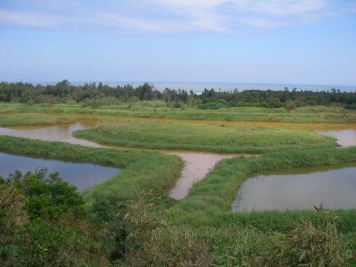 來到無尾港 最重要賞鳥喔 賞鳥台上風景好 微風吹來很舒服 雖然今天沒看到鳥 十月份就會有候鳥來 這時就會很熱鬧喔