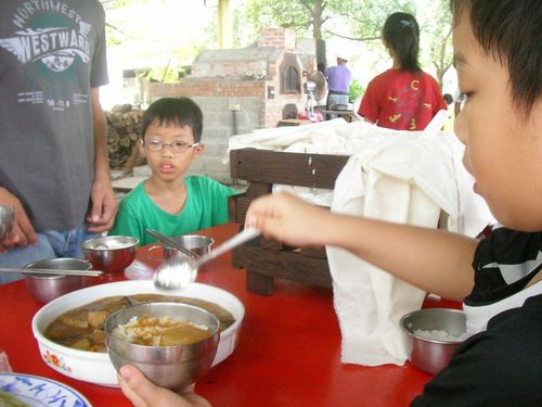 走累了 我們回到嶺腳埕休息 準備用餐 孩子期待做披薩啦