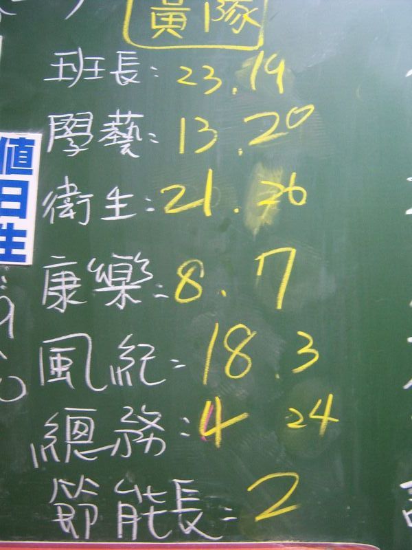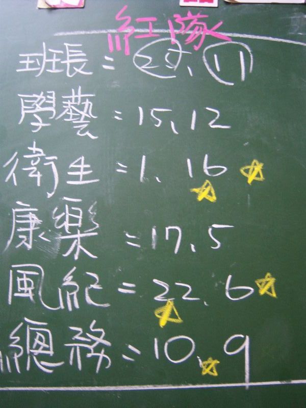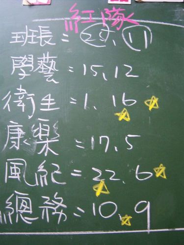 我把學生分成兩隊,每個學生都擔任班上班級幹部….紅隊 黃隊競賽