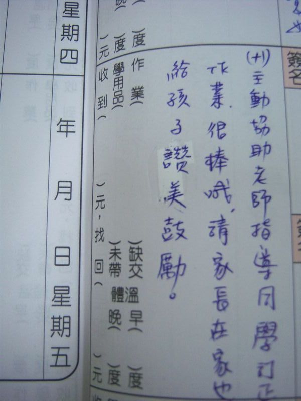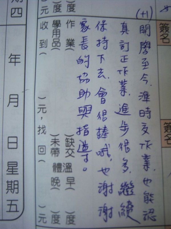 所以我現在會把學生表現好的行為 寫在聯絡簿告知家長