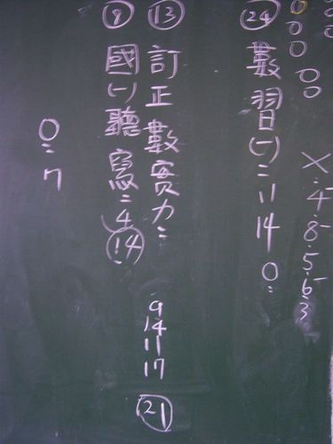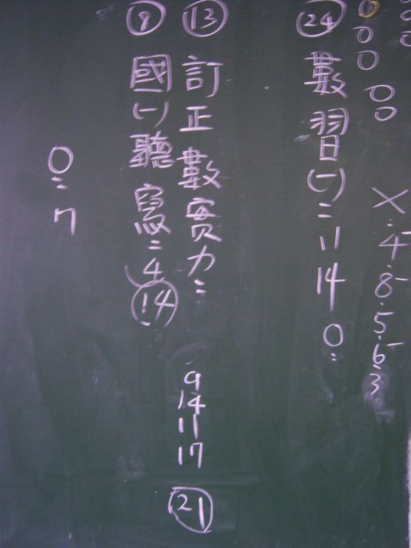 請看下圖 我會把該訂正或缺交號碼寫在黑板上