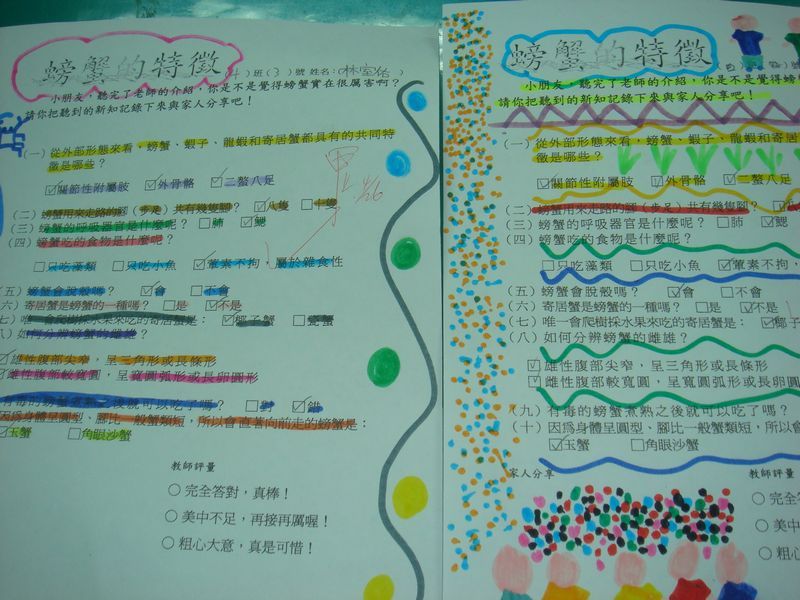4.還好這次有螃蟹DIY活動可以讓學生做彩繪,孩子認為這個部分最有趣。