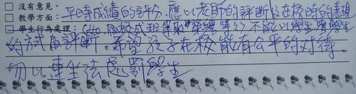 不過少數家長們還是認為加入平時分數會有不公 所以給我一張回條