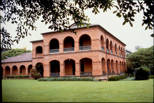 紅色的拱廊及綠瓶欄杆,與紅毛城相互輝映、增色不少。