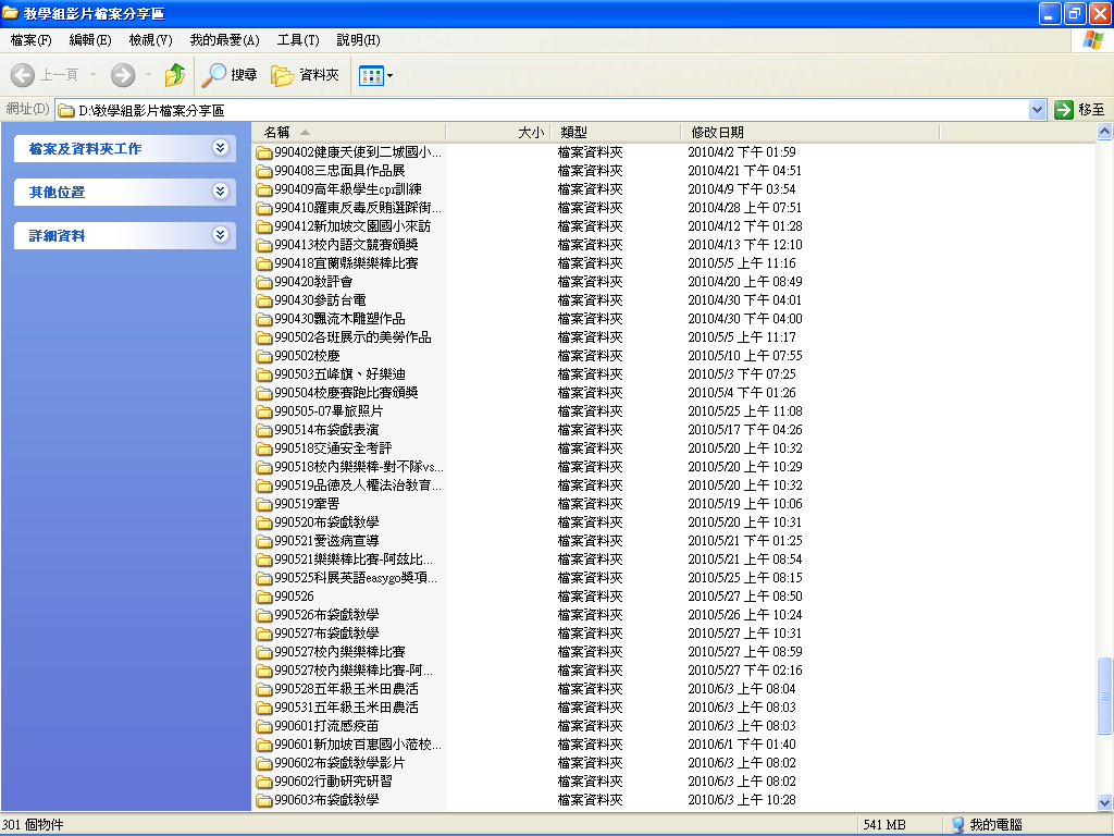 教師歸還相機後,我把相機的照片資料夾直接複製到專門留存照片的電腦中(我專用的行政電腦),將該資料夾名稱改成「時間」+「主題」的形式,如「990601打流感疫苗」,這樣之後要尋找照片的原始檔時,比較好依時間或主題去尋找。