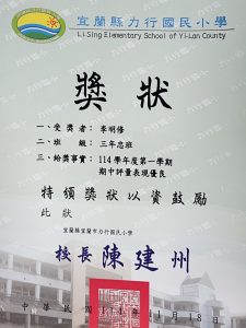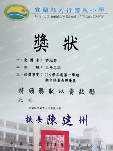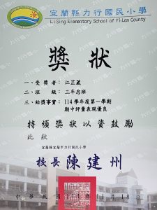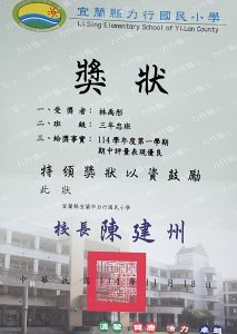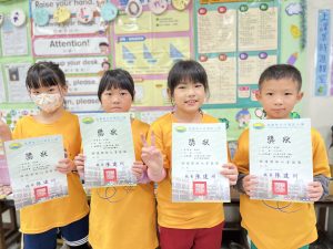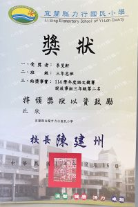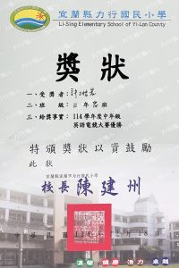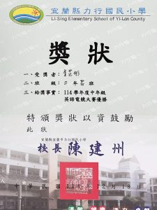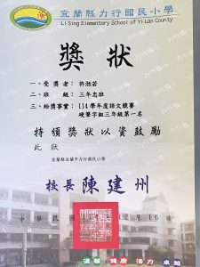 恭喜湉若榮獲三年級硬筆字第一名,旻軒榮獲三年級說故事第二名