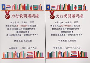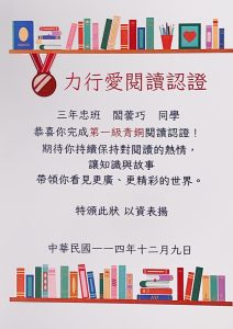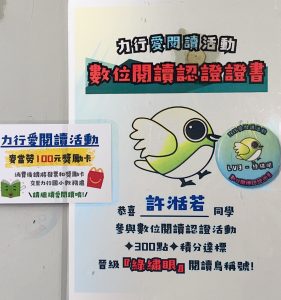 恭喜通過第二級閱讀認證同學、數位閱讀認證300點: