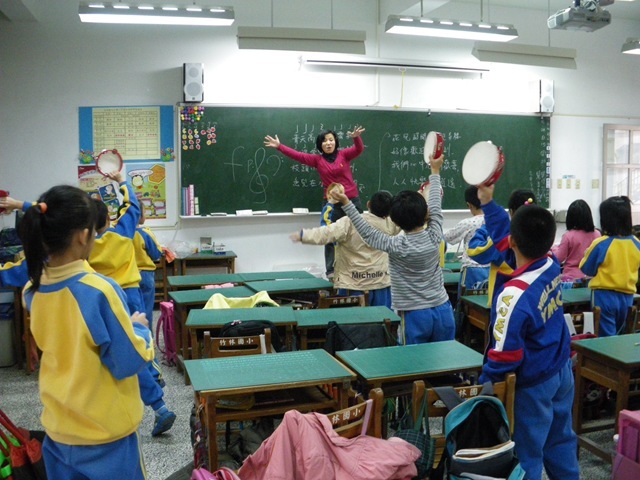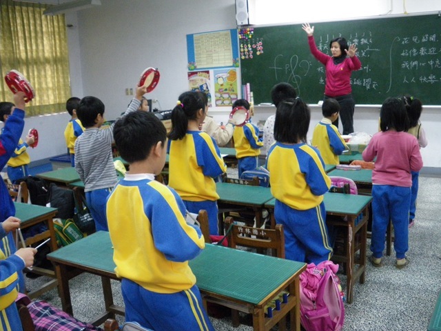 配合「快樂頌」的歌曲唱出歌詞,或用樂器邊唱邊打節奏。
