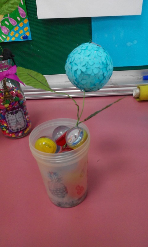 我的寶貝是一隻大象娃娃,它的顏色是藍色的,而且是圓形的。