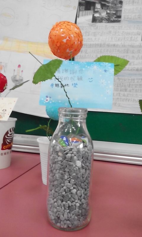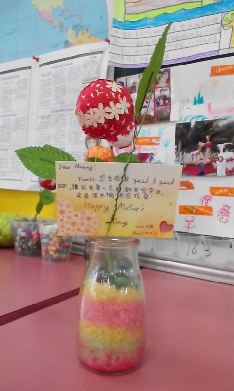 我的媽媽雖然長得矮矮的又胖胖的,但她的臉蛋在我眼裡永遠是最漂亮的。媽媽為了我們整理房間,就算她整理得很辛苦都不喊累,所以我要努力學習,將來才能回饋她。