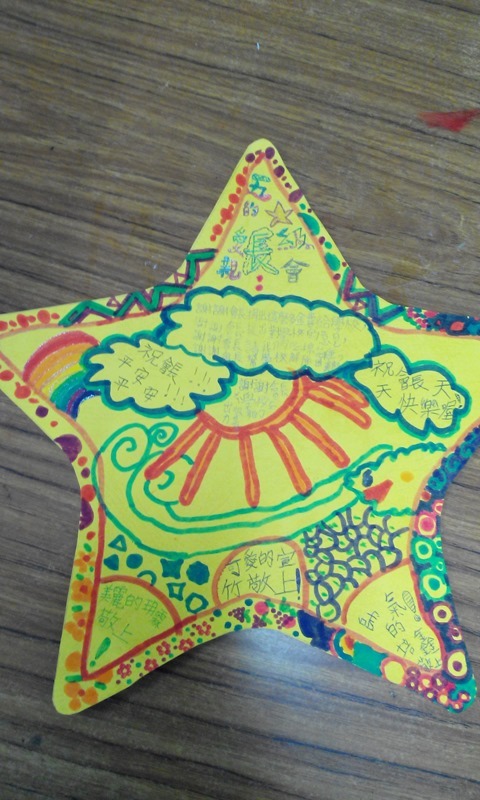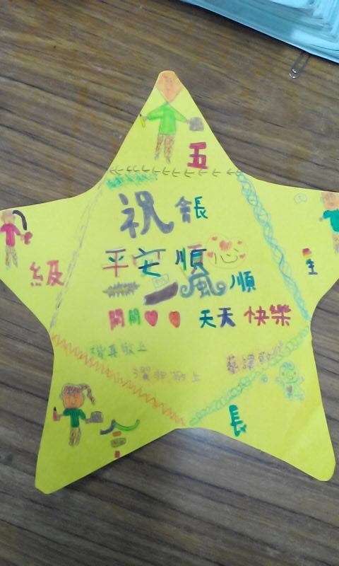 下車時,大家急著衝去找老師,我們終於全班團聚了。接著大部分同學興奮的飛奔到自助餐廳去盛美味的湯圓,我們「三劍客」我、小凡和小非卻留在外頭吃飯糰,即使我們不像其他人一樣在餐廳裡享受,依然吃得津津有味,因為好朋友的陪伴更勝過美味的食物啊!
