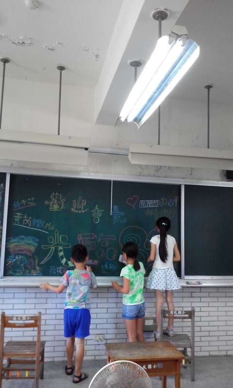伴隨著這些嚇人的景象,是一陣陣鬼哭神號的可怕聲音,不斷在屋外咆哮呼嘯,好像隨時想闖入家中,鄰居家的鐵皮屋頂已不敵強勁的風勢,被吹得無影無蹤,真是怵目驚心。幸好家裡還是安全的,我坐在窗邊靜下心來開始寫書法,享受文字的美,然後再幫忙爸爸處理漏水的地方。本以為可以安穩的度過颱風天,沒想到突然停電了!家裡變得一片漆黑,伸手不見五指,只好在悶熱的屋裡點上蠟燭,大家苦中作樂,我和姐姐一起玩桌遊。讓遊戲的笑聲趕走可惡的颱風。