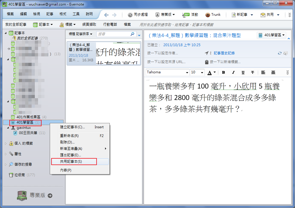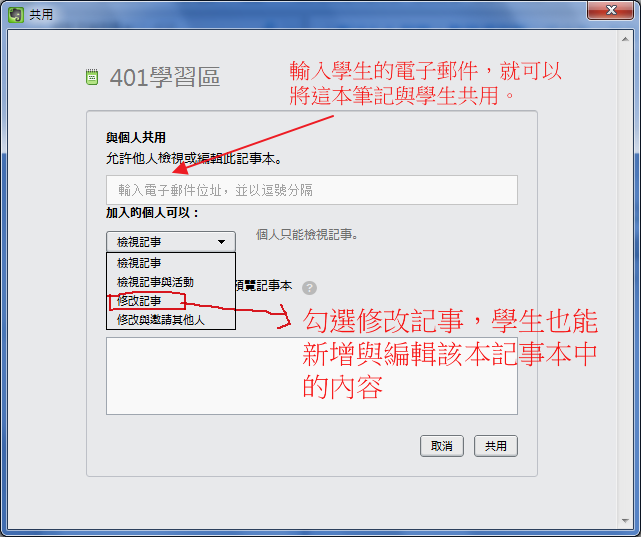 3.教師在自己的evernote帳號中,新建一本新的筆記本(401學習區)
