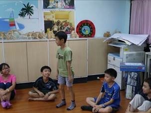 老師先簡單自我介紹,例如哪裡人?去過哪些國家?家人?工作?球類運動?興趣是什麼?接著,每位同學依序上台自我介紹,主要是介紹自己的家人、個人興趣、專長……等。大家台風都很棒,先初步認識,互相熟悉並接受同儕CALL-IN提問,未來有長達4年的時間可以一起在資優班學習,相信大家的友誼會越來越好,並一起開心的在資優班成長。