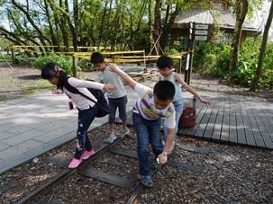 繼上次參觀李科永圖書館後,這次選定羅東林業化園區做為戶外探索的學習場域。出發前,我們一起研究地圖,挑選想要參觀的景點,規劃任務與路線,再依圖指引,一一完成任務。磊磊的任務是以身體平衡走單軌30公尺,實做後才發現真的是不容易呢!心心的任務是在貯木池觀察記錄花嘴鴨的特徵和數量。