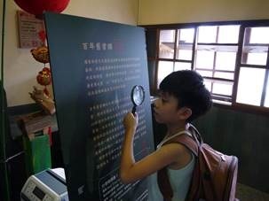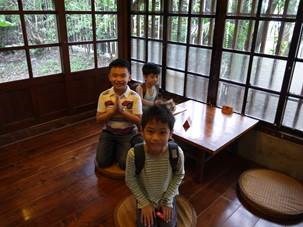 宥宥的任務是在水生植物區找到至少3隻烏龜在一起,可惜遇到整修,所以改成參觀舊員工宿舍,我們參觀了改裝後的百年舊書攤,裡面有一個很別緻的閣樓。最吸引孩子的是會動的運原木小火車,模型車從太平山山上一路來到竹林車站,讓孩子了解太平山林業與羅東的發展息息相關,園區內處處可見遺留下來的一些蒸汽火車頭、鐵軌、貯木池、林業文物、竹林車站等設施,也有豐富的自然生態環境,很值得孩子們到此探索。