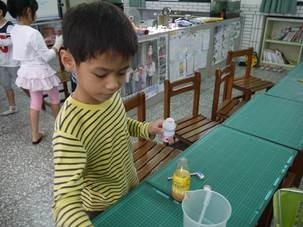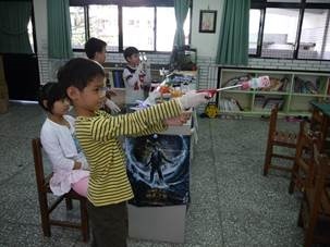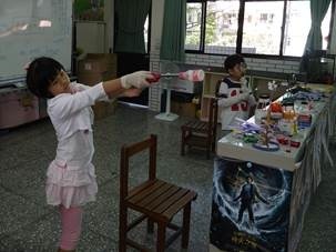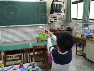 【三年級】發現科學-空氣砲作者:劉建成2015 年 12 月 7 日2021 年 3 月 18 日這個主題與空氣有關,利用酒精氣體瞬間燃燒膨脹的威力,阿成師讓大家體驗一下像「爆米花」一般的威力,大家別小看大氣壓力的威力。宥宥用滴管吸3滴酒精溶液裝入養樂多瓶,用黏土將瓶口密封,當孩子們舉起空氣砲時,剛開始每個孩子都很怕「碰」的聲音,全部躲到後面摀耳朵,之後,大家越來越有膽識,專注的瞄準目標發射。大家在黑板上標出同心圓得分圈,增加大家瞄準的趣味性。