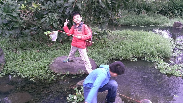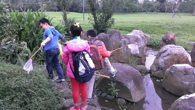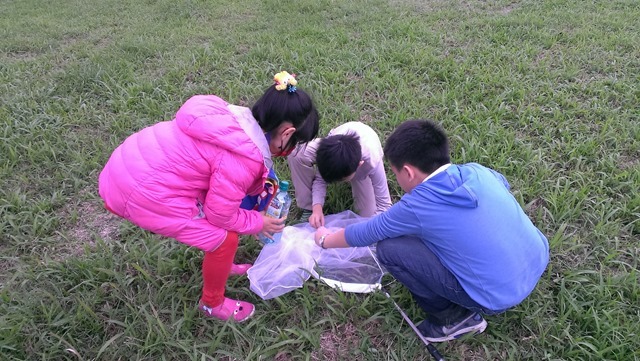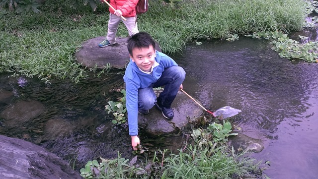 【三年級】探索課程–興趣培養–採集水生植物、認識昆蟲作者:劉建成2016 年 2 月 16 日2021 年 3 月 18 日運動公園是許多宜蘭人休閒的場所,也是外地遊客常常造訪的景點。利用課堂時間,帶孩子們到運動公園採集水生植物,我們順著虹明湖的上游,以徒步的方式,慢慢找尋適合的水草,大家穿梭在小溪、大石與樹叢之間,好像是探險一般。最快發現了大萍,磊磊一下子就撈了很多,宇昕也彎下腰拔了一些大苦草,心心最秀氣,使盡力氣撈大萍。之後,我們拿出超大號的專業捕蟲網,大夥兒開心的在望天丘旁的大草坪上捕抓昆蟲,捕抓到小跳跳–長頭蝗和幾隻不知名的小蛾。