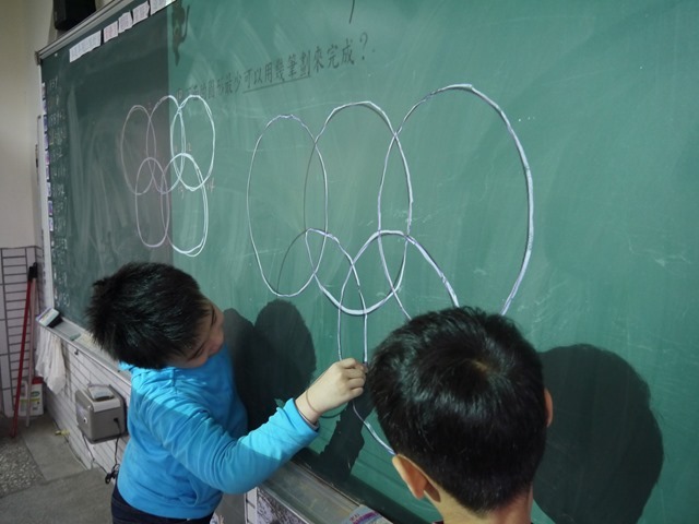 【三年級】數學課程-一筆畫圖形作者:劉建成2016 年 4 月 25 日2021 年 3 月 18 日新單元一起來思考一筆畫圖形,很多孩子在益智網站都玩過,心心很快地就能畫出一筆畫圖形,遇到比較複雜的圖,宥宥、磊磊一起試試看。透過奇數點和偶數點的數量,其實可以先預測會是幾筆畫能完成,再實際連連看。挑戰題是奧運五圓環,宇昕、宥宥的速度還蠻快的,一下子就想到路徑了。