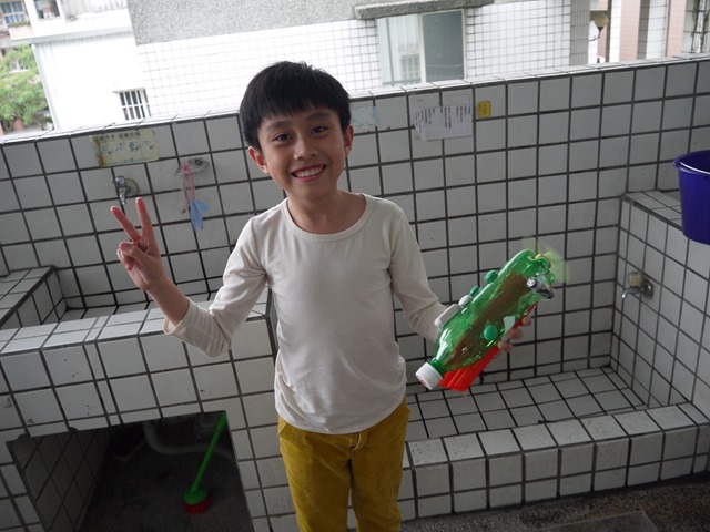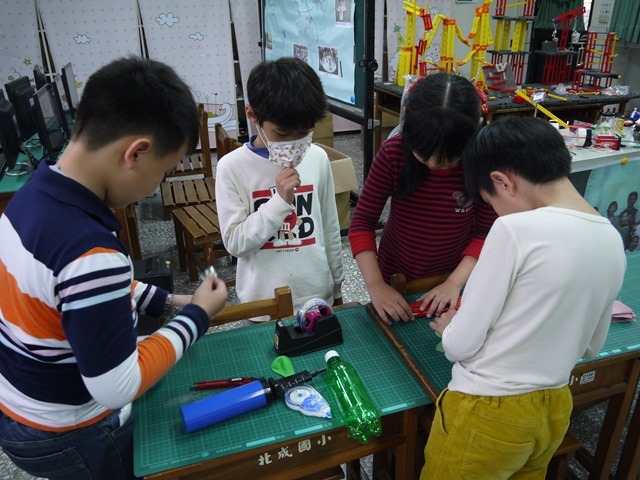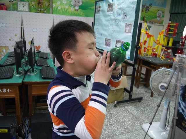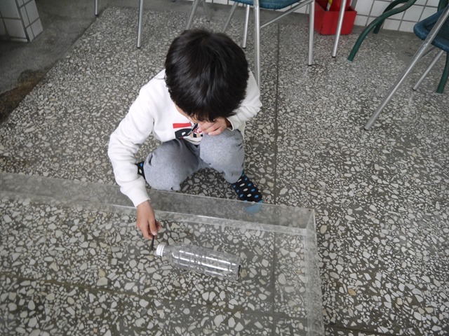 【三年級】發現科學課程-非動力船作者:劉建成2016 年 4 月 25 日2021 年 3 月 18 日阿成師給每個人一個任務,讓寶特瓶在無提供額外動力的情況下,瓶子可以從蓄水池的一端移動到另一端。大家開始發揮創意,接著找材料實際動手操作。宇昕想用氣球來噴射,宥宥先用肥皂的表面張力,發現力量太小,改用磁鐵的吸引力。心心用並排吸管增加浮力後再用磁鐵吸引力,磊磊挑戰馬達風扇,安裝後再想辦法讓寶特瓶船維持平衡,大家都很不錯,將阿成師教過的知識活用。