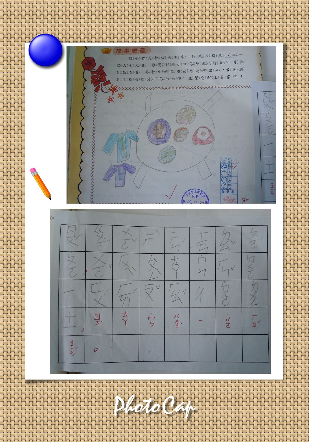 哇!今天英語外師Carolyn來我們班上課,介紹他的故鄉和家人給我們認識,更教我們唱歌,這40分鐘的課好像讓我變成一位外國人喔!因為我們都是說「英文」的喔!!