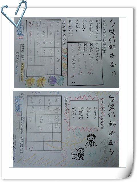 今天發現「時鐘單元的教學影片」,雖然我們目前還沒有教到秒針,不過這部影片裡對分針時針的關係也交代的非常清楚,很有參考價值。小朋友放學後可以透過影片多練習一下喔!
