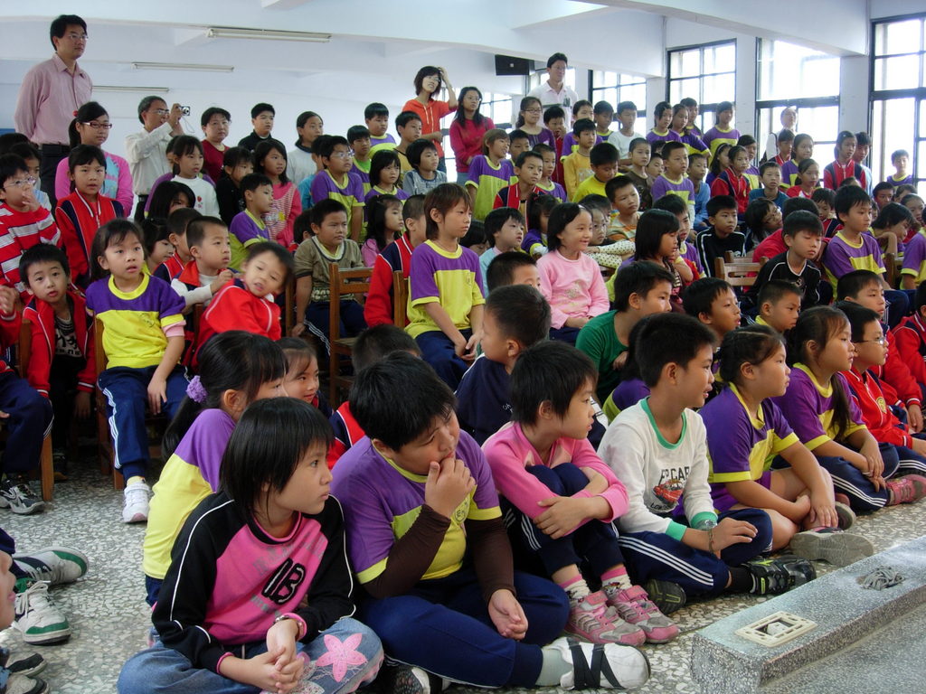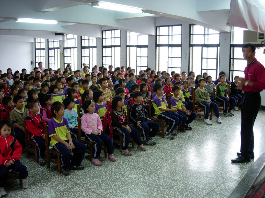 小朋友看到目不轉睛,連老師和校長也在卡位置看戲。