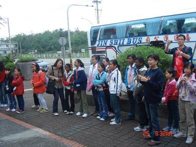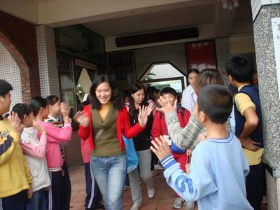 歡樂的時光總是短暫的(子顏老師的這句台詞用到快爛了喔,換句新的吧!),到了該送客的時刻了。竹安國小五年級負責接待的同學們在校門口列隊歡送培新小學來訪的師生。