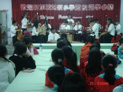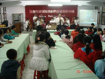 本校國樂團演奏優美的樂曲來歡迎遠道而來的朋友。