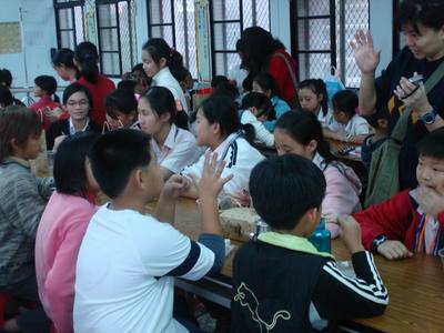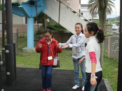 聽完介紹後,要真正的來參與學校的活動了。不過,看來遠道而來的朋友對盪秋千蠻感興趣的。