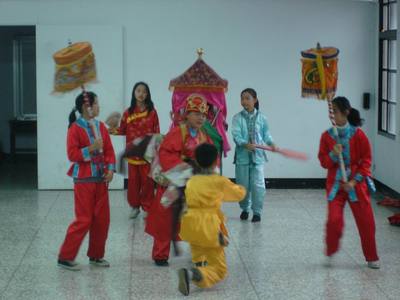 接下來要進行的是布馬陣教學及體驗活動囉,先由竹安國小的小朋友們先進行示範表演。