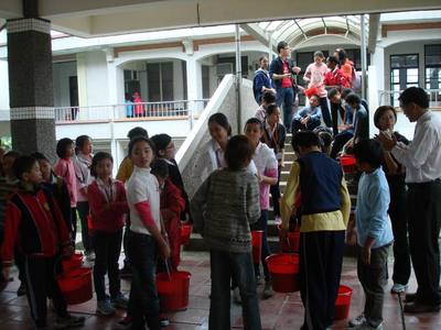 田園體驗結束後,兩校學們生進行交流並交換禮物。