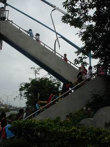織夢園在學校對面,隔著濱海公路,還是走天橋安全。不過,前一陣子颱風把遮雨的頂蓬吹掉了,不知何時才能修復。
