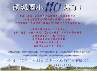 敬邀大伙兒與頭城國小共享生日的喜悅(程序有變動)