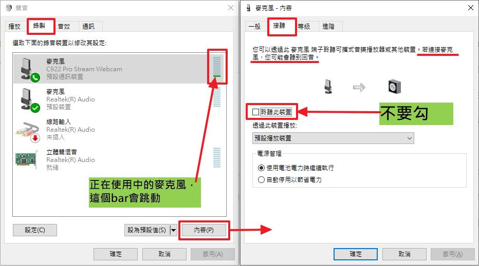 電腦音訊的基本設定 由 野山羊 · 已發表 2021 年 7 月 2 日 · 已更新 2021 年 7 月 9 日 疫情之後線上教學的機會變多了,很常遇到老師詢問沒有聲音,特別把一些基本設定紀錄在這裡,大家請看圖操作囉~以下以 Windows 10 為例,請先到【控制台】 ↑那個bar(或稱狀態條),可以用來確認目前正在使用哪個麥克風