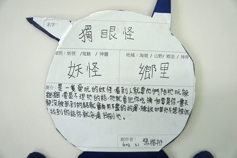 2、結合圖書館「妖怪傳說」課程,共讀「妖怪台灣」,製作「妖怪身分證」