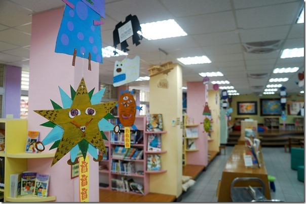 這些妖怪作品,是不是為圖書館增添了熱鬧的氣氛呢? 感謝志工祺寧阿姨爬上爬下的幫忙掛作品。