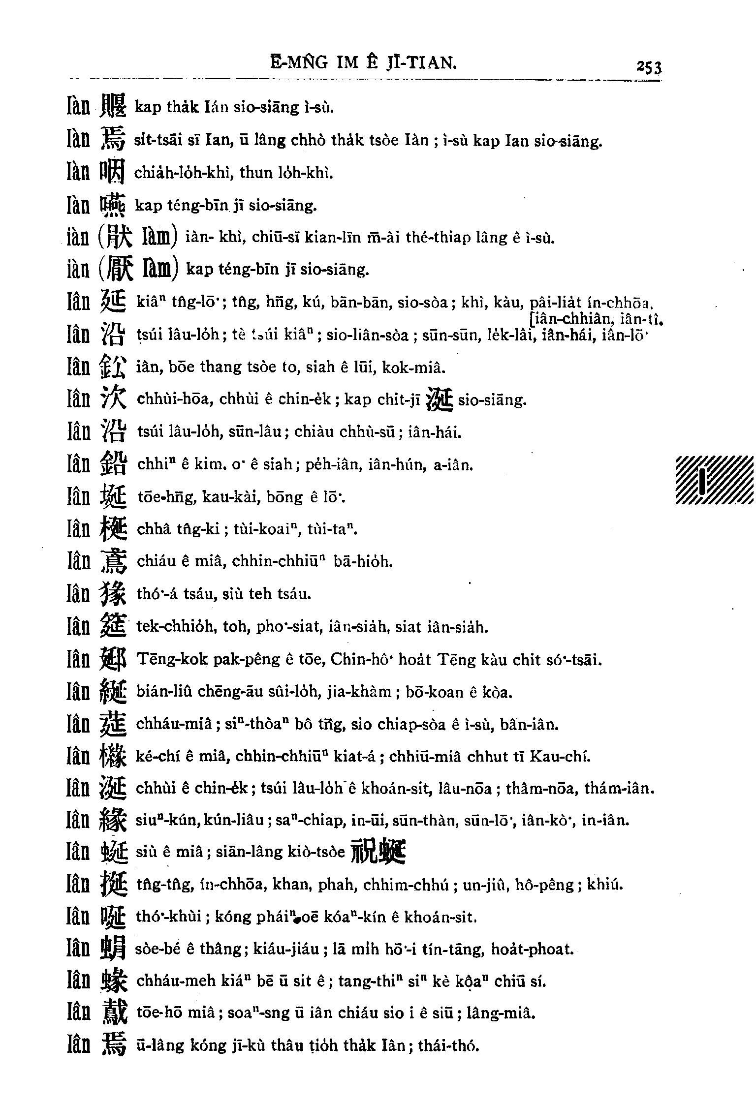 7728Iàn  si̍t-tsāi sī Ian, ū lâng chhò tha̍k tsòe Iàn; ì-sù kap Ian sio-siāng.實在 是 ian, 有 人 錯 讀 做 iàn; 意思 kap ian 相像.原冊掃描