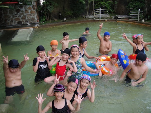到了礁溪我們步行到華閣溫泉,進到大廳,紛紛聽到此起彼落的驚歎聲:哇~哇~~~~下圖中美麗又親切的經理正是我們熟悉的碧玲阿姨,感恩她的熱心,免費為我們提供五星級的泡湯服務,還有飯店裡的帥哥和美女服務人員,
