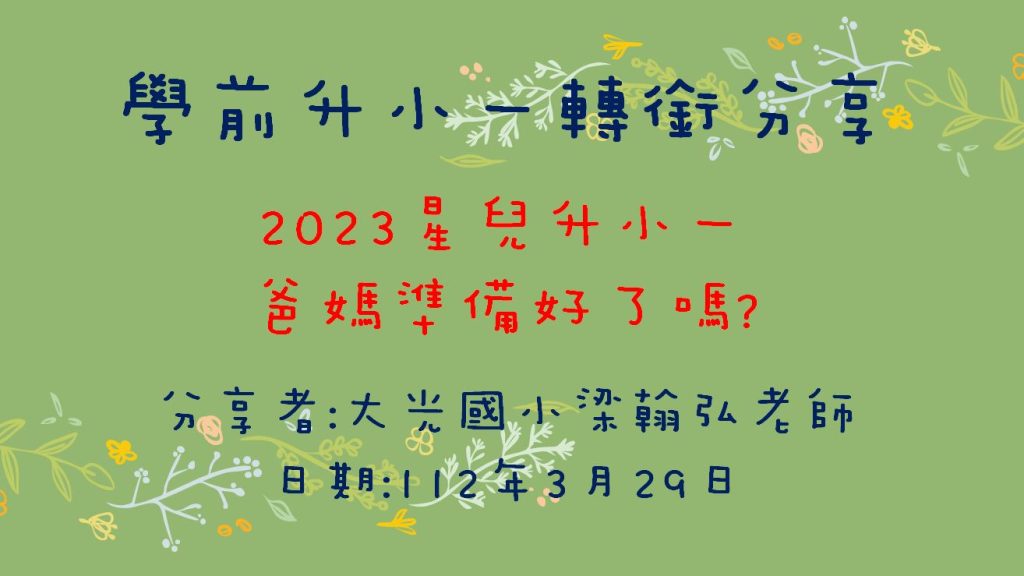 2023 3/29,4/9「2023星兒升小一,爸媽準備好了嗎?」