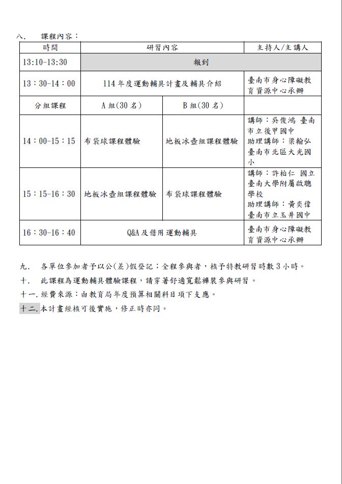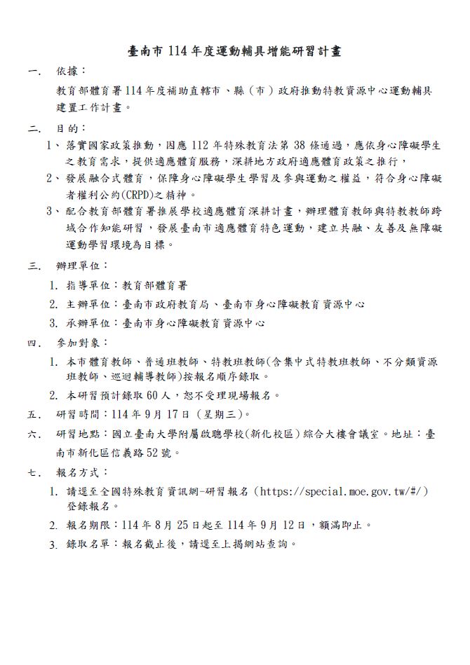 20250918[特教輔導團]臺南市114年度運動輔具增能研習Post author:梁翰弘Post published:2025 年 9 月 18 日Post category:台南市教育局特教輔導團 / 大光國小特教班邀約分享20250918[特教輔導團]臺南市114年度運動輔具增能研習 相關內容20221213[邀約分享]大光國小特教班梁老師受邀國立台南大學特殊教育學系演講分享《主題-溝通障礙輔助科技與實作》2024 年 10 月 20 日[特教輔導團]黃淑婷老師受邀加入台南市特教輔導團2021 年 5 月 10 日[邀約分享]110年03月22日黃淑婷老師受邀分區特教中心(安順國中)辦理的『特教班生態教學暨國語課程教學實務分享』研習講師2021 年 5 月 10 日