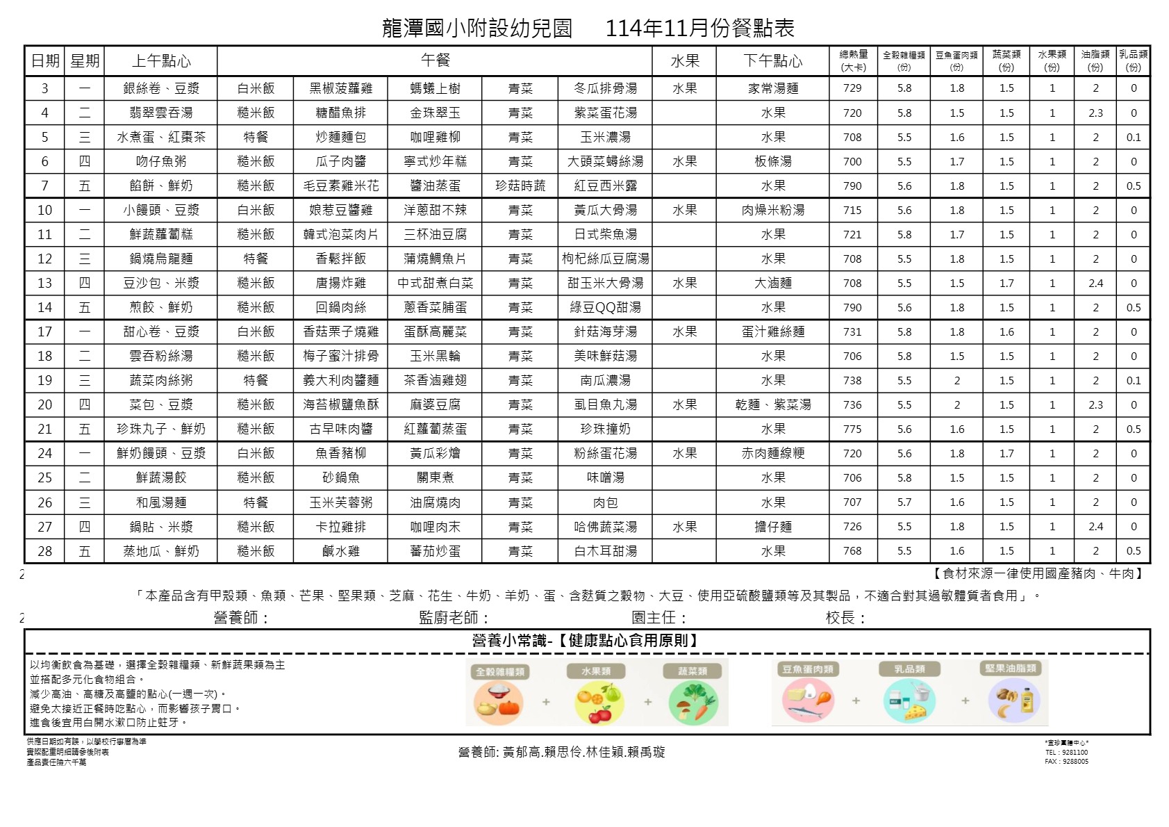 幼兒園114年11月餐點表