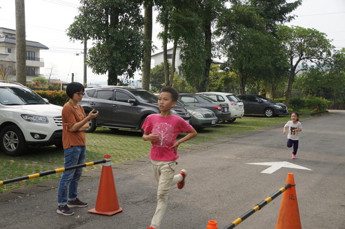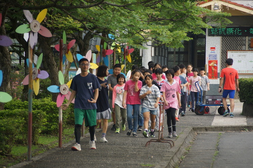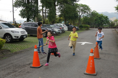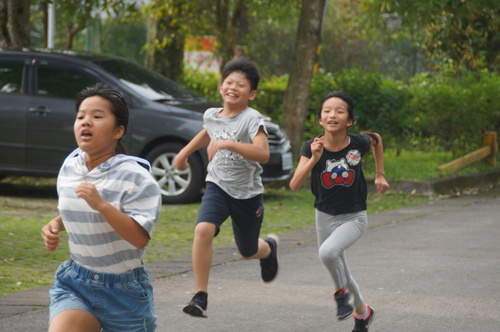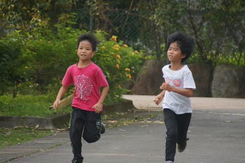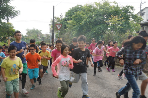 春季路跑的時間又到了,小朋友在做完健身操後,整裝待發。哨音一響起,小朋友精神奕奕的往前奔跑。