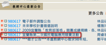 看到了宜蘭縣第二次國民電腦應用競賽活動最新公告