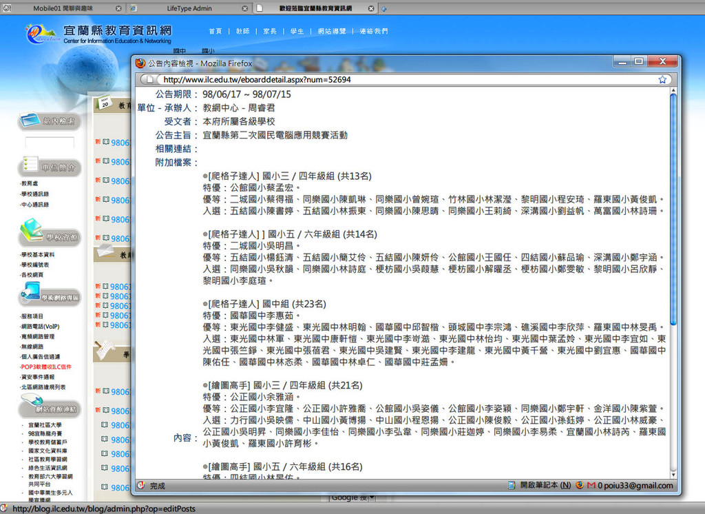 看到了宜蘭縣第二次國民電腦應用競賽活動最新公告