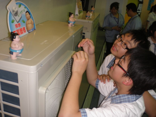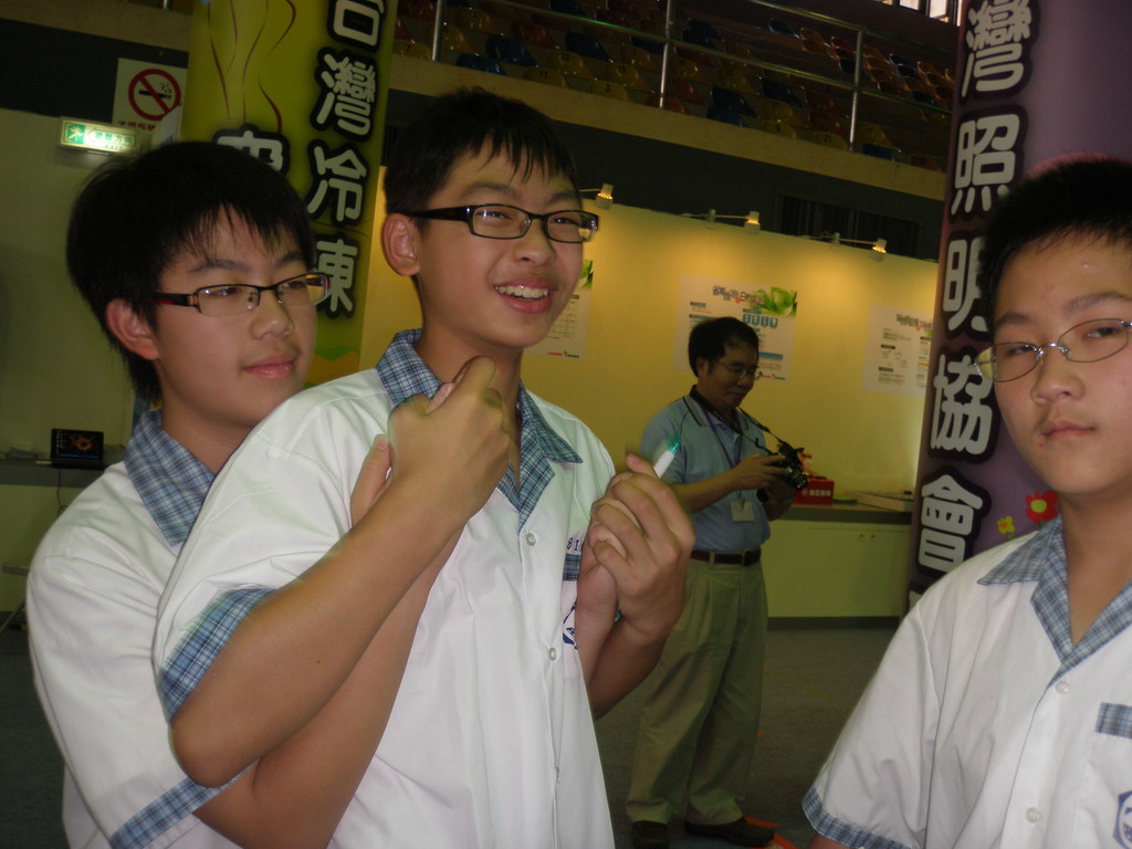 大哥哥:你看,這是太陽能吹風機~~可以省電呦~~~