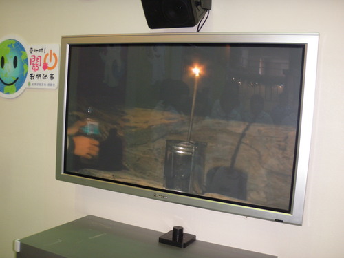 大姐姐:小朋友快看~~如果再不節省能源的話~~~以後就沒水及電可以用了~~