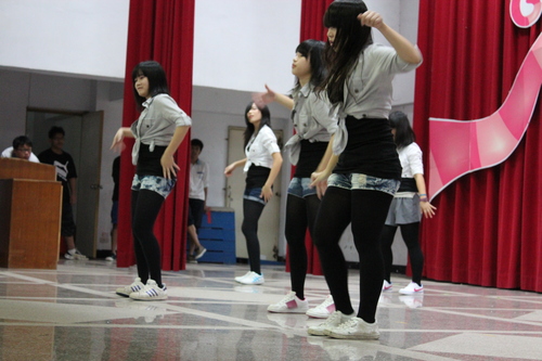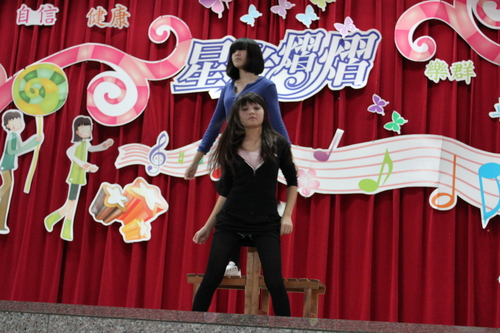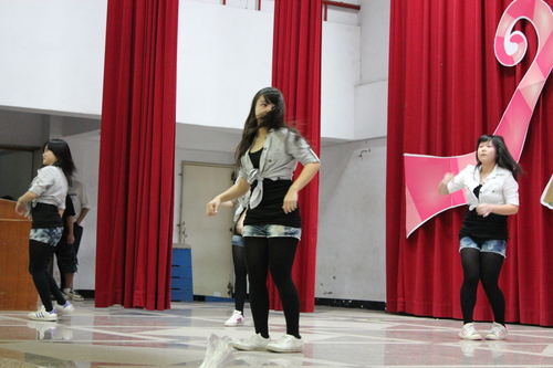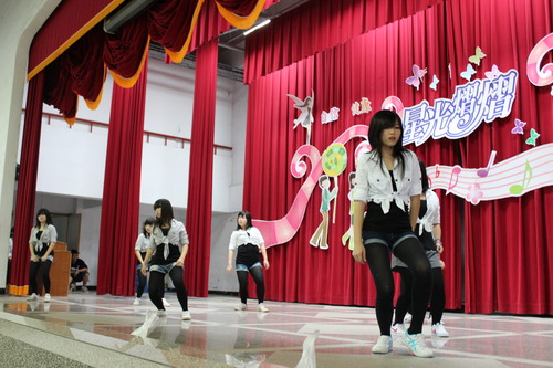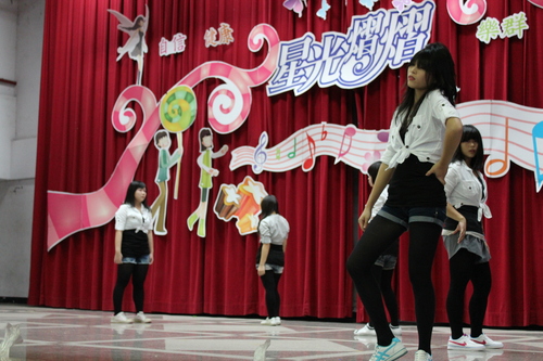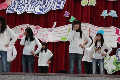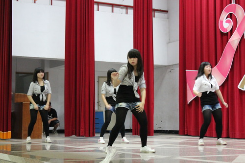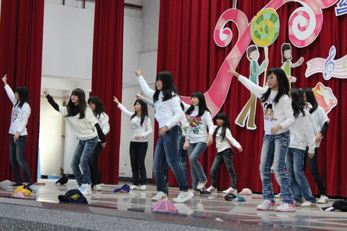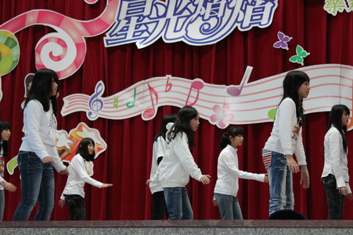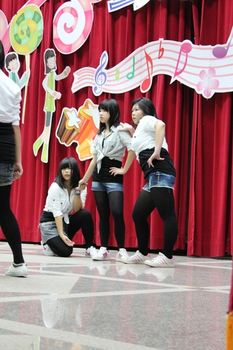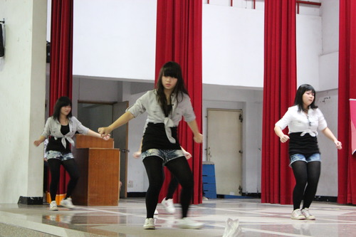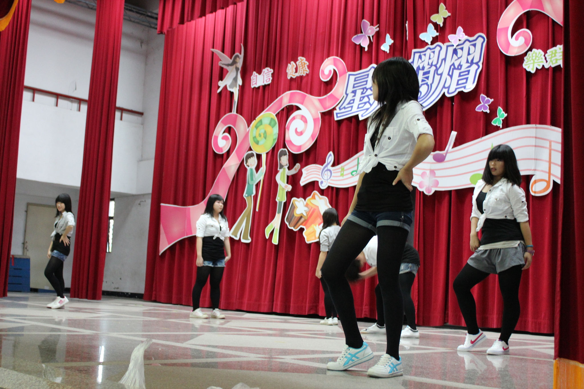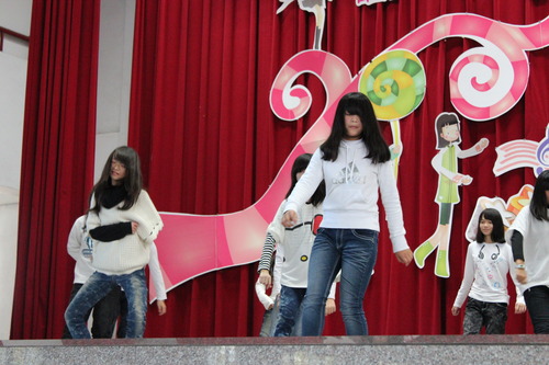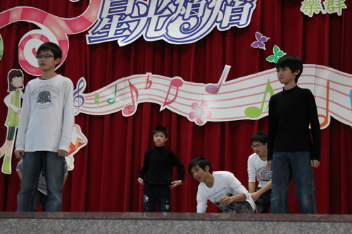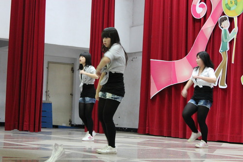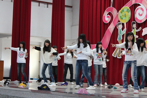 100年歲末聯歡30 12 月 2011Lin Kunsheng還記得去年的此時三忠同學帶給許多師生驚艷的演出今年仍不負眾望帶給大家不一樣的感受結合他班同學及帥氣的的替代役大哥真的讓全場為之沸騰一直都覺得多學習才藝對自己未來定會有幫助所以才會同意你們在三年級還進行表演很高興妳們在不影響課管樂的情形下成功的完成表演仍希望你們把這精神運用在課管樂方面ps.仍感謝思又老師提供的照片,另外,動畫檔為祐正同學所拍攝 動畫檔 三忠舞蹈表演 三忠混合舞蹈表演 歌神鴻仁大哥