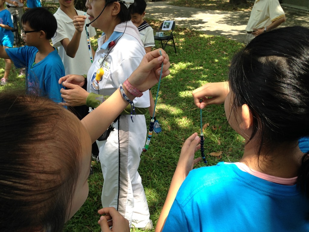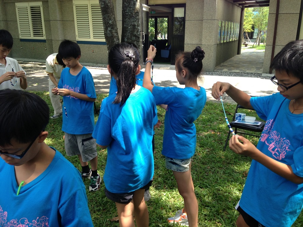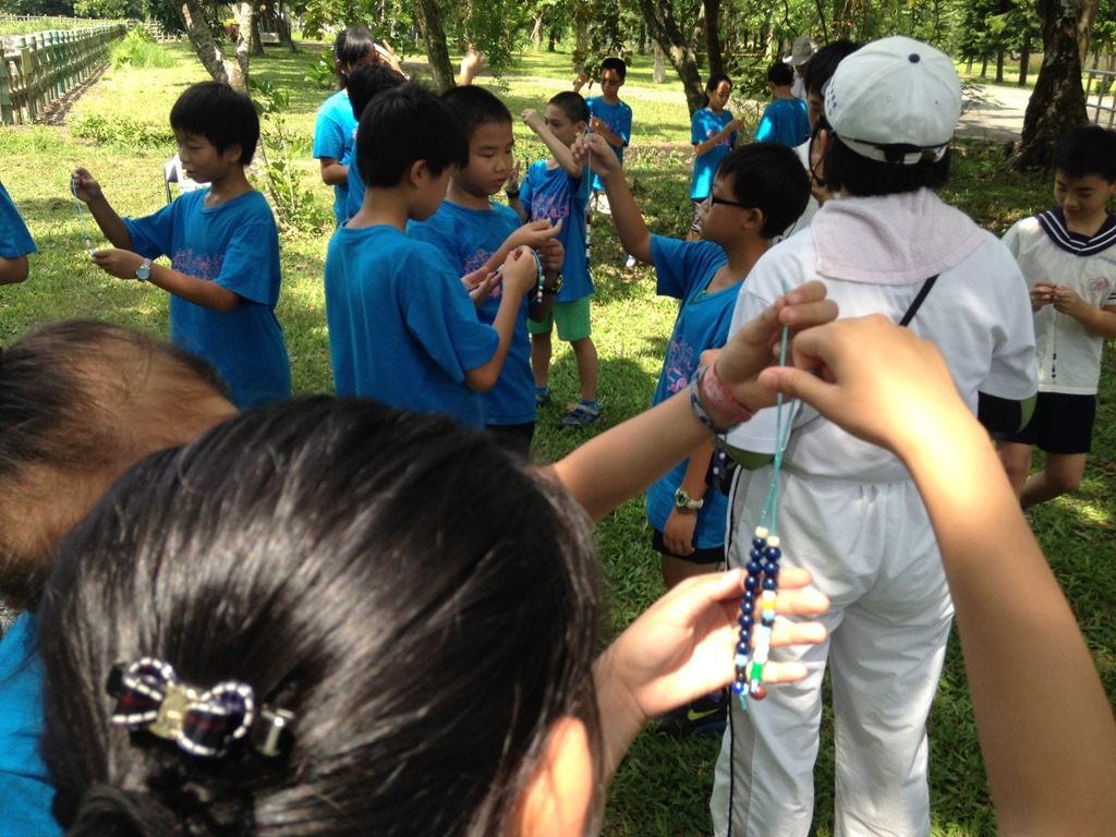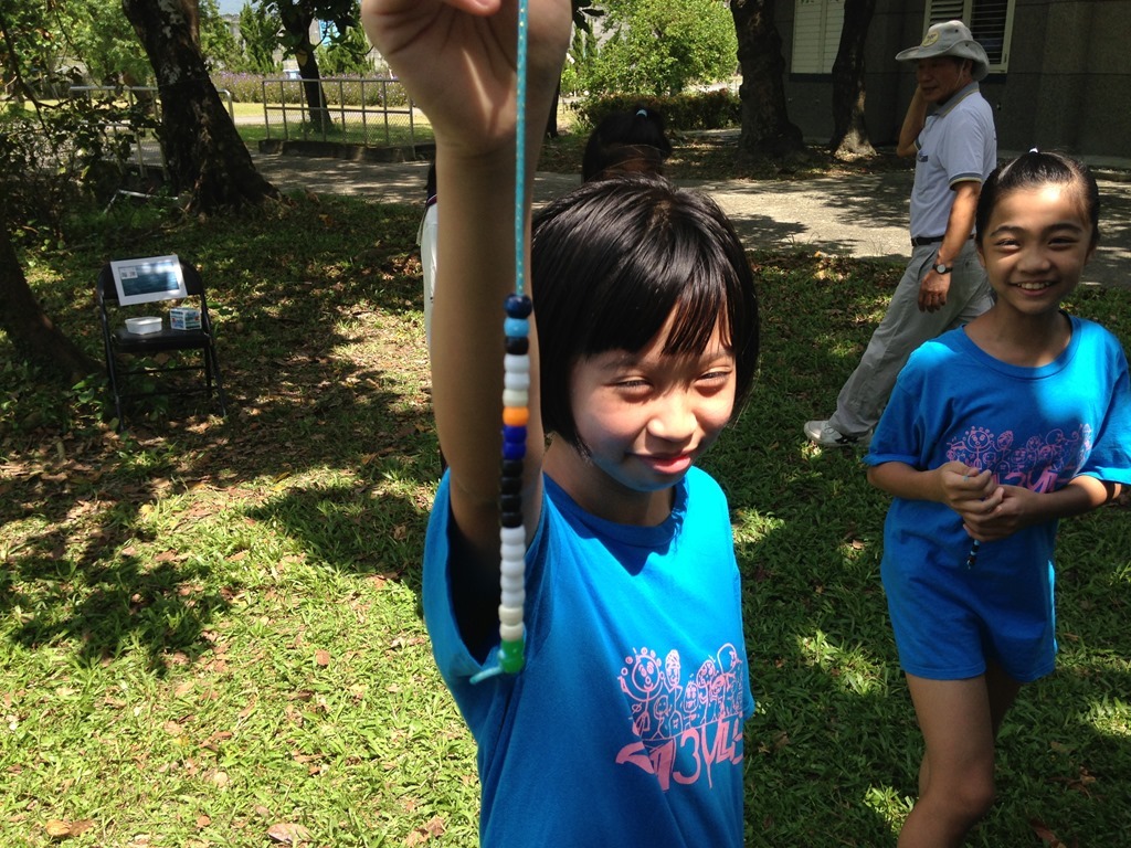 自大自然中~水的循環,藉由串珠珠、珠子顏色的多寡還了解循環。